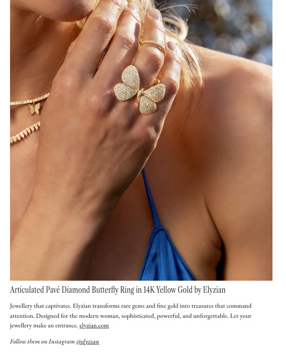 We are thrilled to see one of our most daring designs featured in the April 2025 issue of Glamour UK, a publication that perfectly captures modern style and confidence. It was the dynamic, graceful movement of our butterfly ring that caught their attention, a piece designed not just to be worn, but to be experienced.