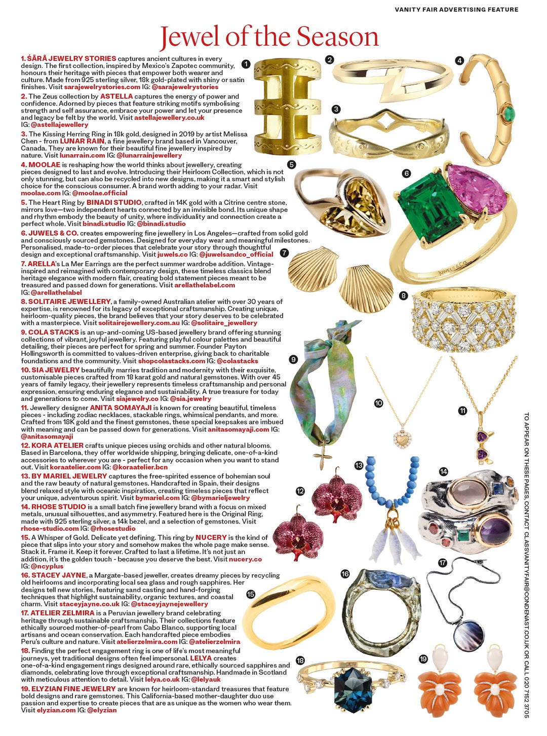 It is always an honor to see our work recognized, especially within the discerning pages of Vanity Fair UK. For their June 2025 issue, it was the vibrant, hand-carved artistry of our Palm Frond Earrings that caught their editor's eye. We believe that the best jewelry tells a story, and we are thrilled they chose to share this one.