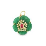 The Fleur de Charme Pendant reimagines the classic floral motif with bold color and architectural precision. Featuring a central gemstone framed by six sculpted, petal-shaped stones, this signature silhouette is crafted in solid 14K gold. Designed to lie flat when worn, the pendant offers subtle dimension and a refined presence—perfect for layering or wearing on its own.