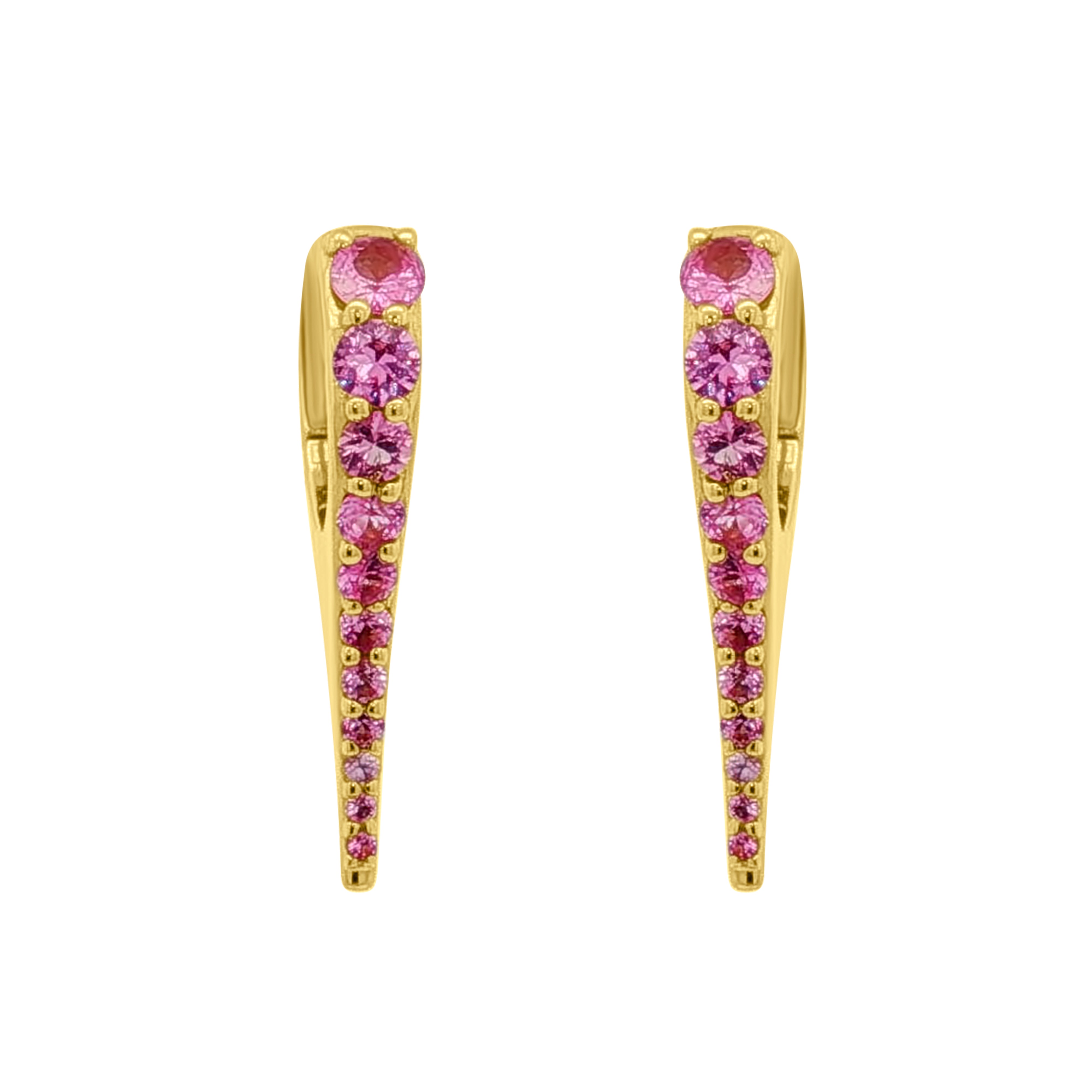 Pink Sapphire Spike Huggie Earring in 14k Yellow Gold