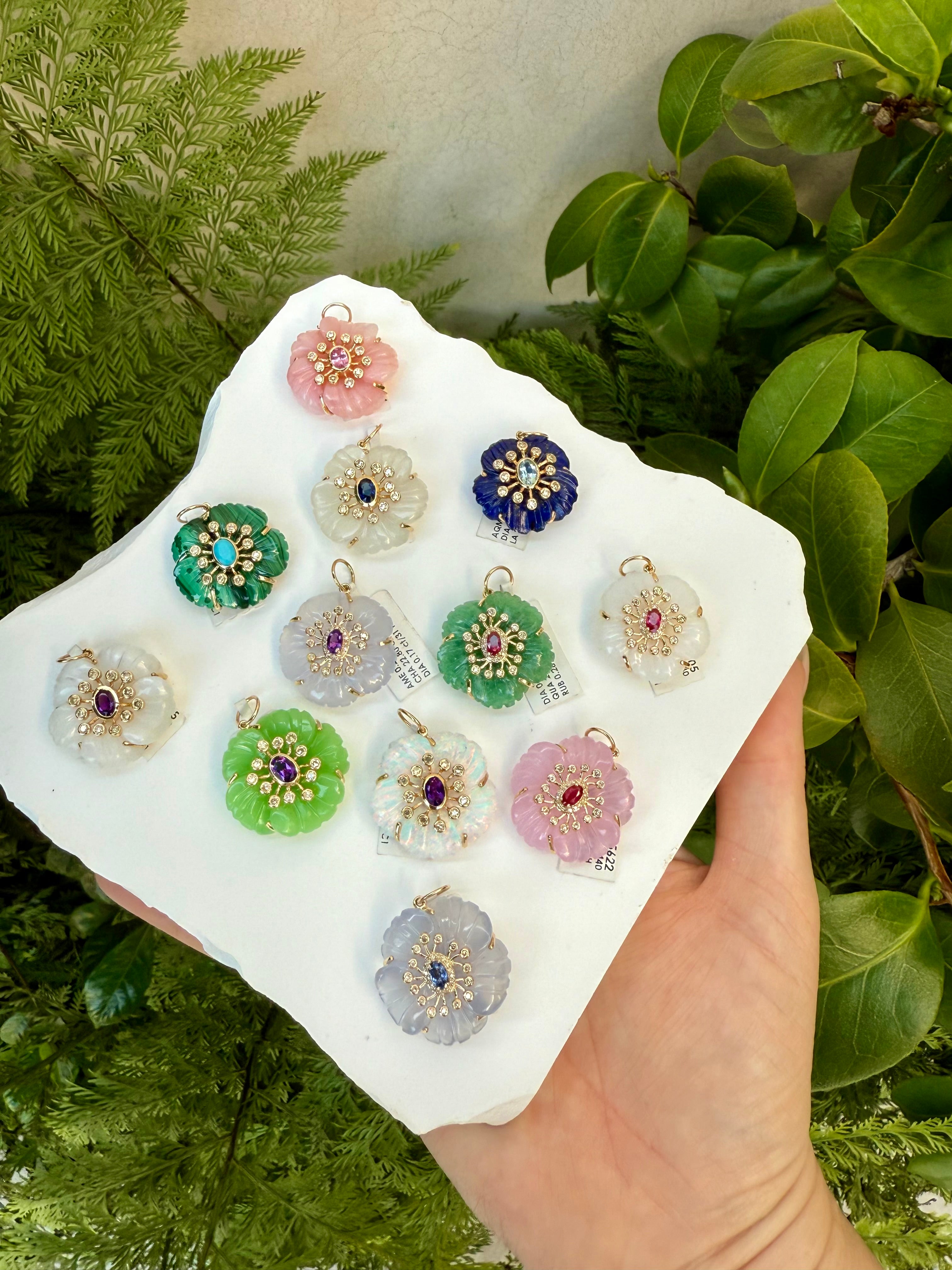Lush and layered like a secret garden, Jardin Mystique channels botanical grandeur with a hint of magic. Where malachite leaves cradle a turquoise bloom kissed by diamond dew.