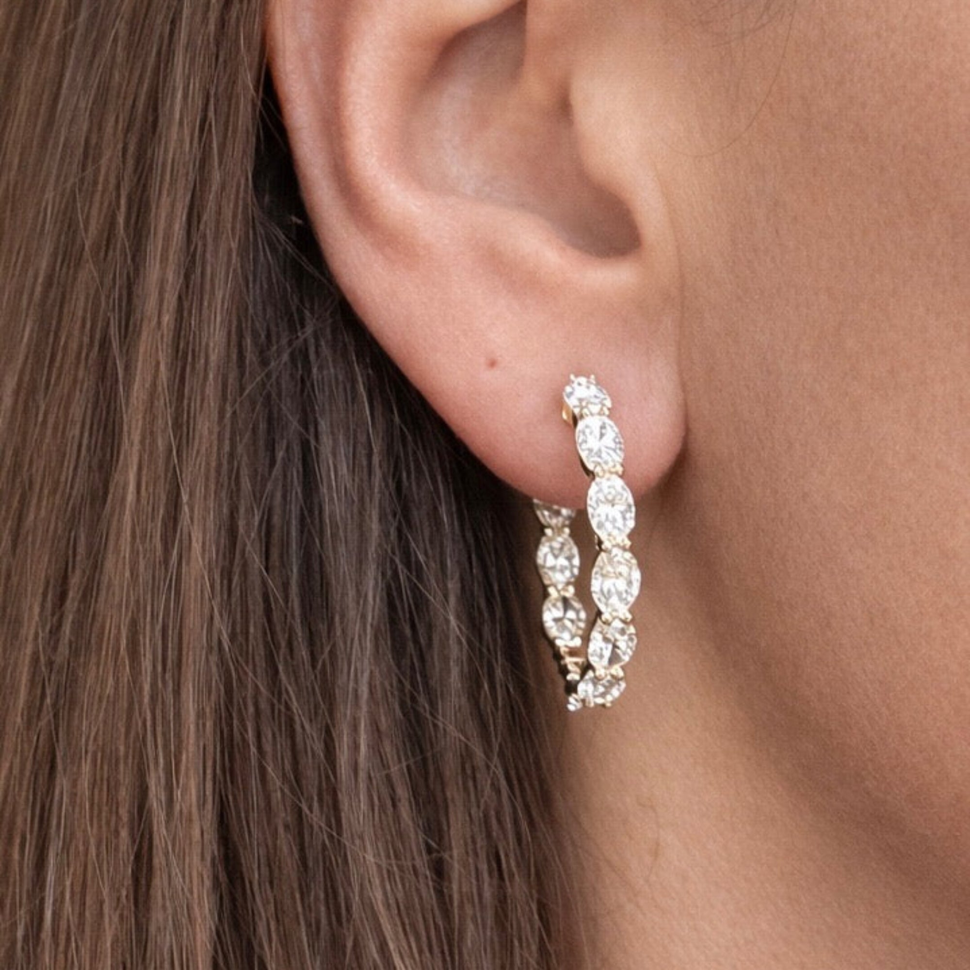 Lab-Grown Oval Diamond Inside-Out Hoops in 14K Yellow Gold by Elyzian on model