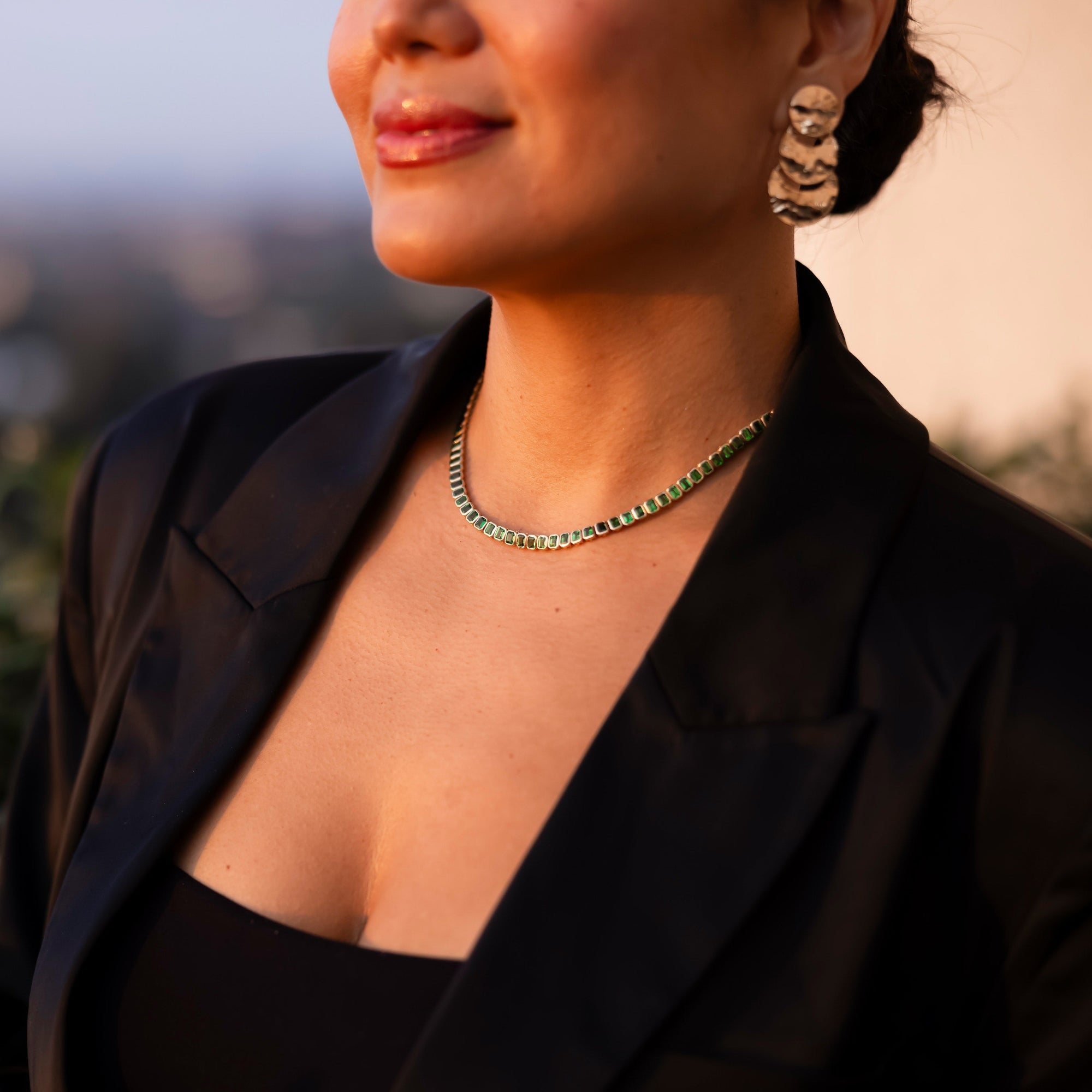 Modeled image of Elyzian's Bezel Set Tsavorite Tennis Necklace