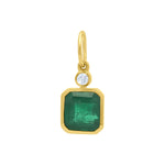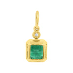 Vibrant and captivating, this pendant showcases a 4.93ct Zambian emerald set in polished 14K yellow gold. Its rich green color is complemented by a single natural diamond accent for a subtle touch of sparkle. A refined, timeless piece designed to elevate any neckline.